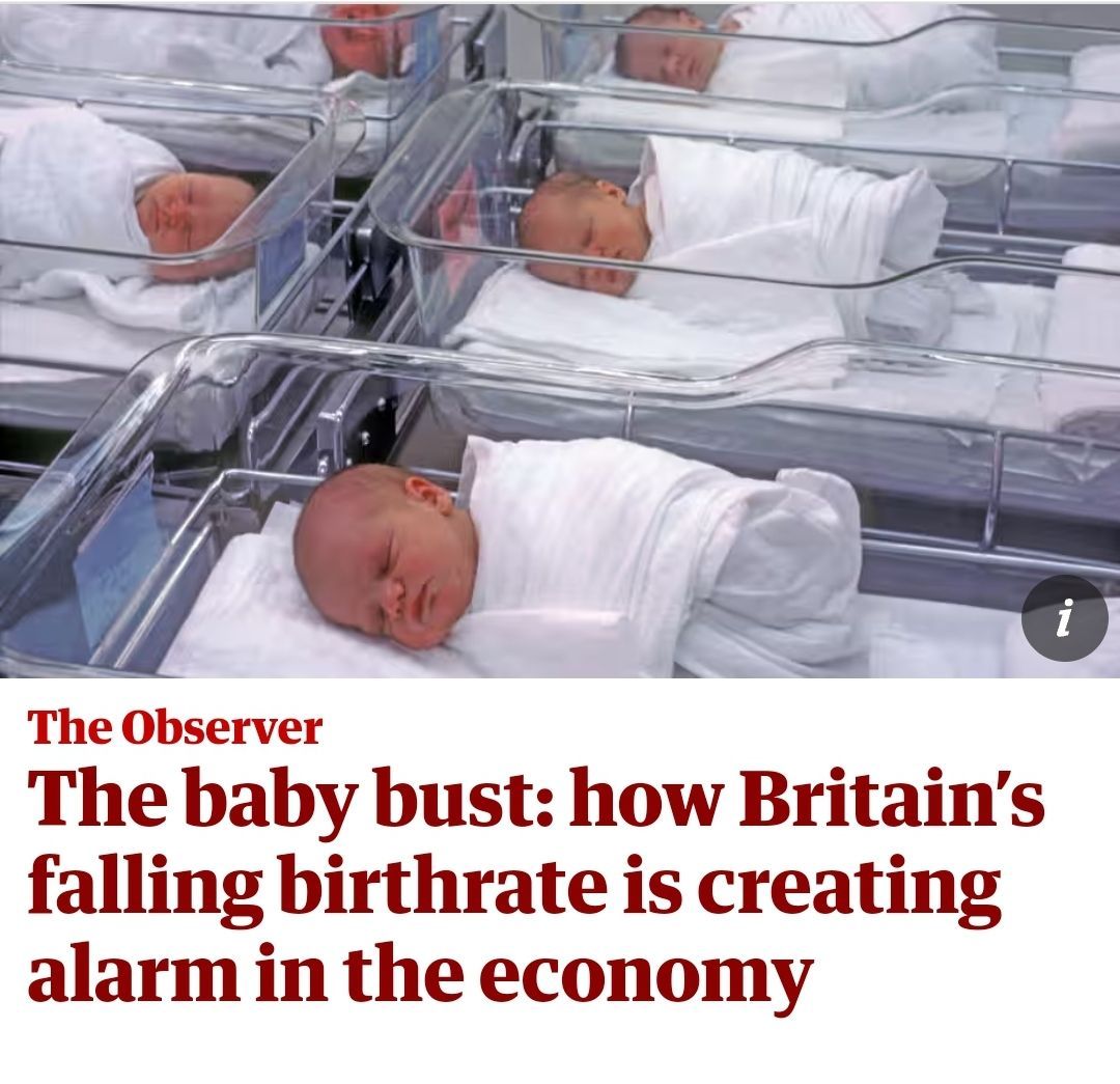 영국도 출산율로 고민이구만... 가디언즈 링크 남겨놓고 갑니다 https://www.theguardian.com/business/article/2024/jun/30/the-baby-bust-how-britains-falling-birthrate-is-creating-alarm-in-the-economy