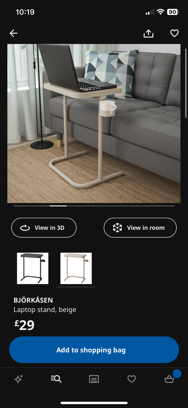 이케아 랩탑테이블 이케아 랩탑테이블 판매합니다. 얼마 쓰지 않아서 거의 새것입니다. 픽업만 가능하며 South Quay DLR역에서 합니다. http://www.04uk.com/bbs/board.php?bo_table=b7&wr_id=145874