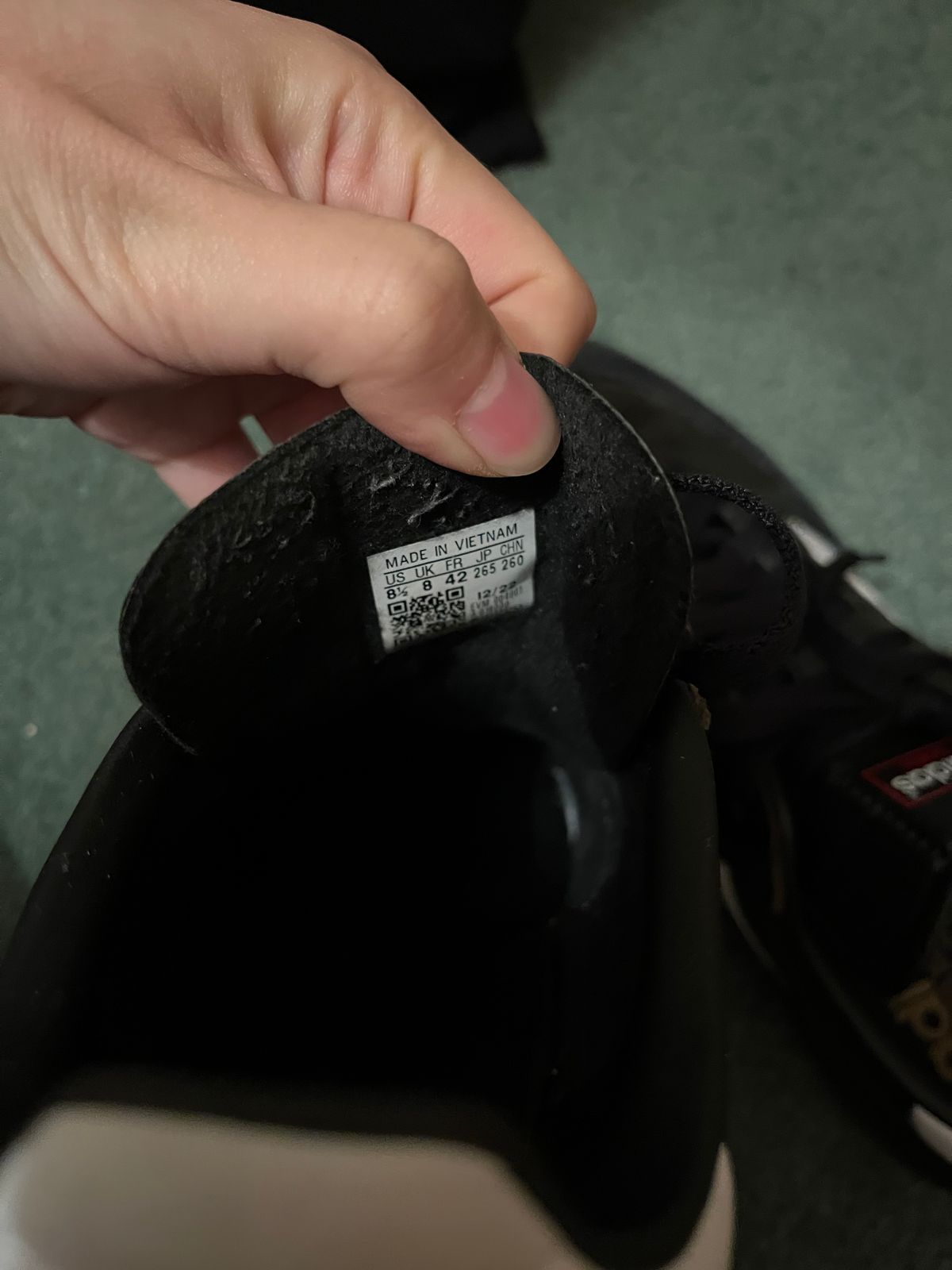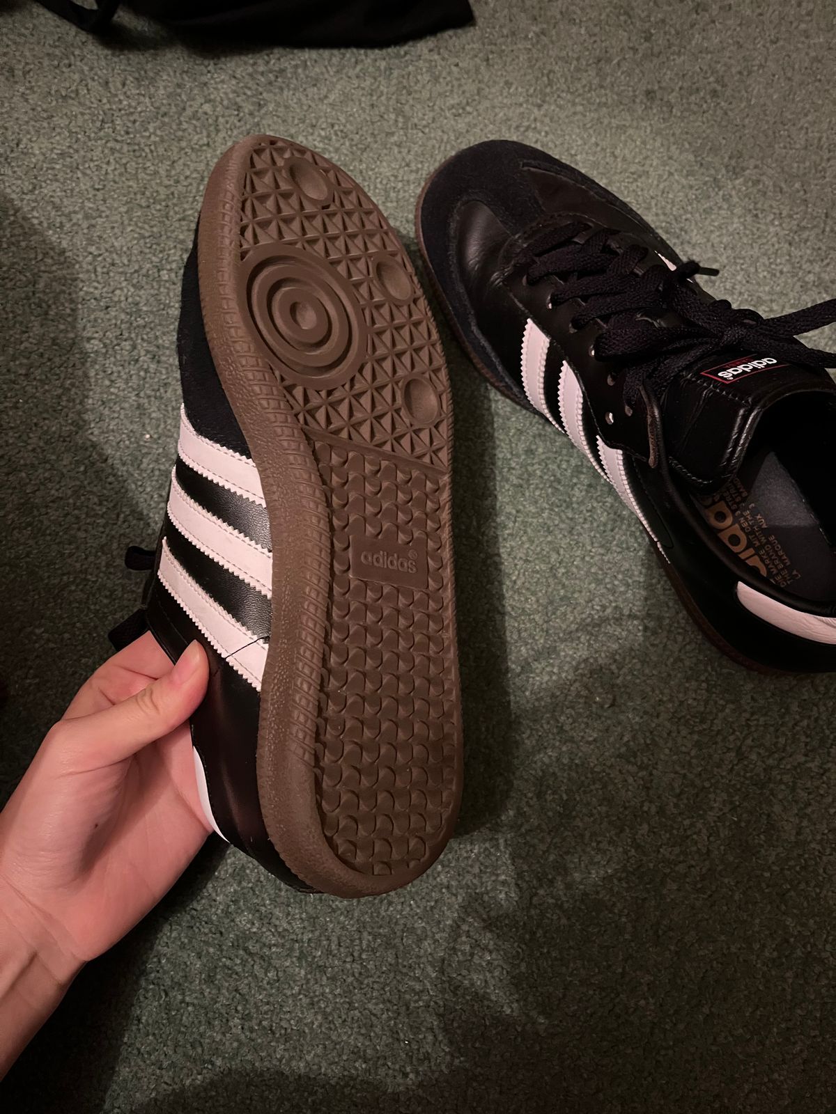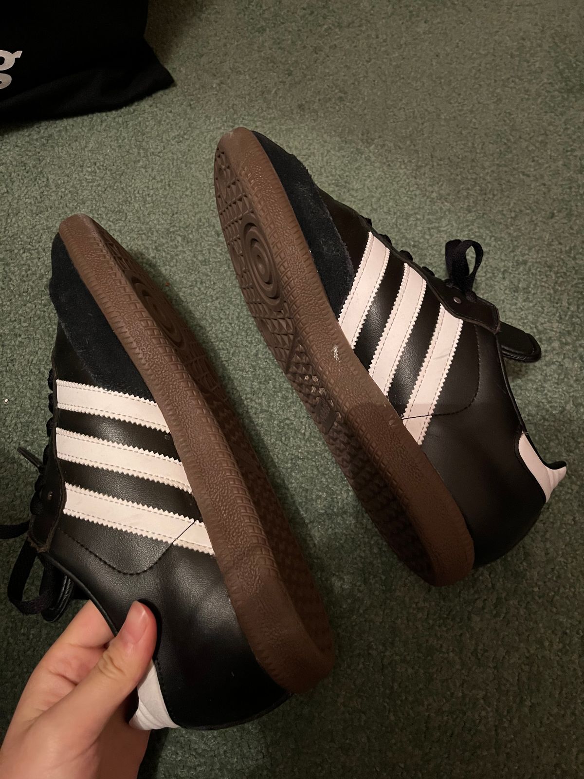 아디다스 삼바 (사이즈 Uk 8) 블랙 £50에 판매합니다. 인기템이라 갖고 싶은 사이즈가 없어서 조금 큰 사이즈로 구매했더니 역시 잘 안 신게 되네요. 유럽 사이즈로 42이고 한국사이즈로는 260정도인 것 같습니다. 실착 5회 이내이고 상태는 사진과 같이 깨끗하고 거의 새 거 같아요~! 메시지 주세요 :)