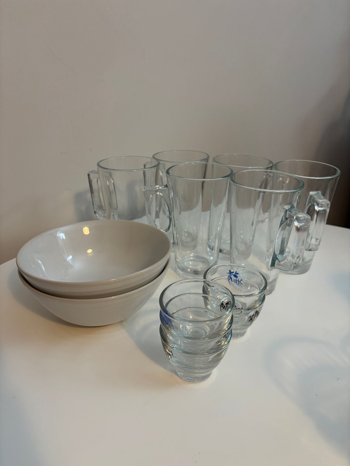 그릇/유리컵 1개당 £1 소주잔 5개 세트 £2 판매합니다! 이 나가거나 하자 없어요🙂↔️ 일괄 구매시 £9 !